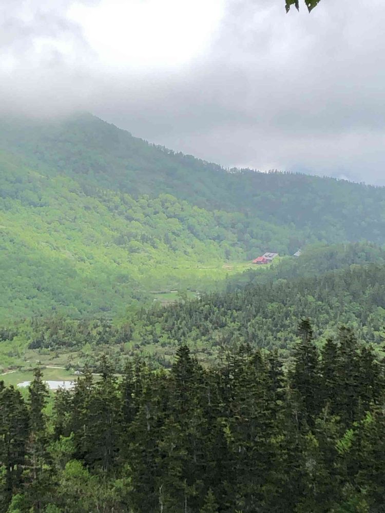 入口の栂池ヒュッテ記念館の赤い屋根が小さく見える。最奥部まで歩いて一周3〜4時間くらい。