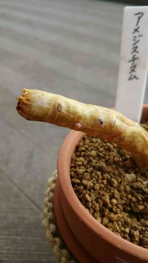 長い間、棒だけになっていたアメジスチヌムにやーっと新芽がでた!