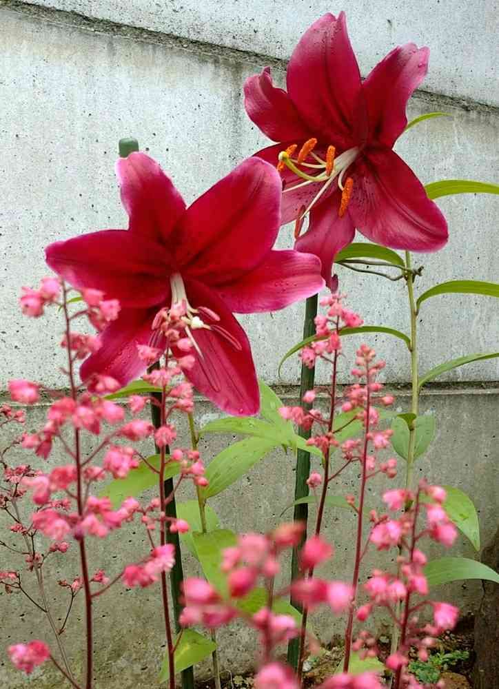 どちらも強い日差しに弱いので塀の下に植えました😊 もう少しすると白いカサブランカも咲きます😌✨