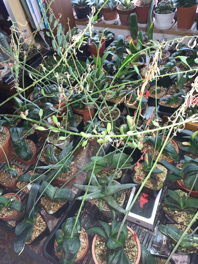 随分ごちゃごちゃしてきたな!いまだに花芽を出す株が有るので入れ替えと交配作業で毎日1〜2時間、今年も数千粒種が取れそう。