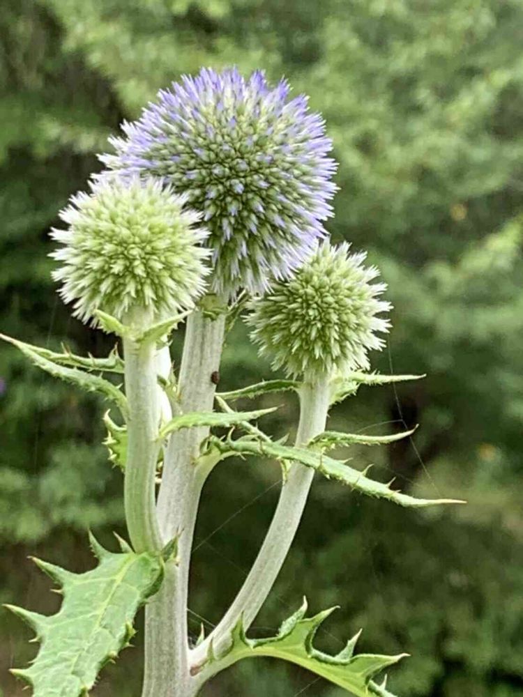 ルリタマアザミは外国原種、花の色が本来は白で青は園芸品種。