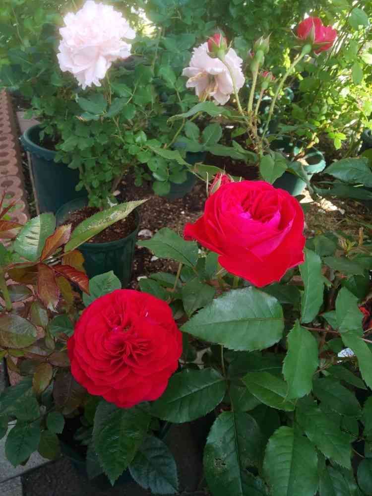 北海道の夏は花にとって比較的過ごしやすいんでしょうね。ボルドーもマイローズも玄関前に並べています😍
