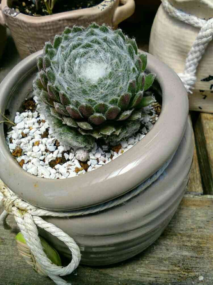 100均で買ったセンペルビュウムとても可愛くモコモコ毛に大きくなって素敵😆