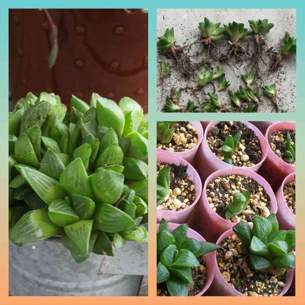 小さい鉢の中でキュンキュンに詰まったハオルチア、植え替え時期で無いのは重々承知で、解体、植え替えを決行😆