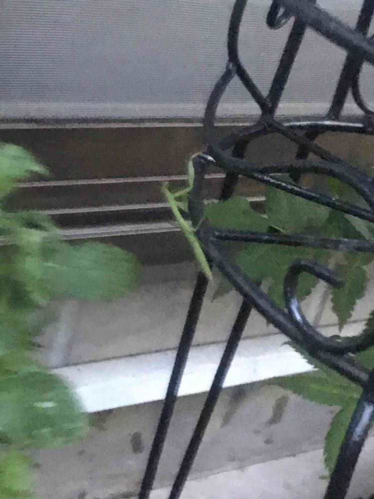 水やりに驚いて、いつもの定位置であるスペアミントから ぴょんっとお隣へ。