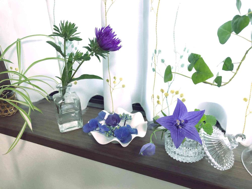 💠ストケシア💠紫陽花💠桔梗を窓辺にちょこっとずつ🌱