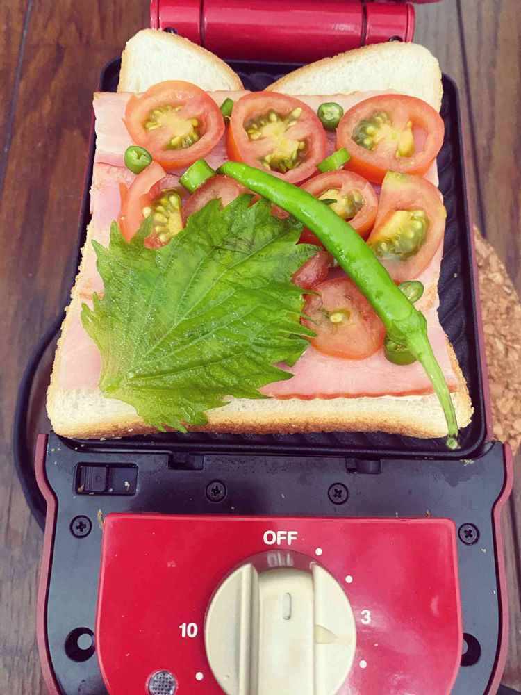 BRUNOのホットサンドメーカーで、自家製野菜ホットサンド。