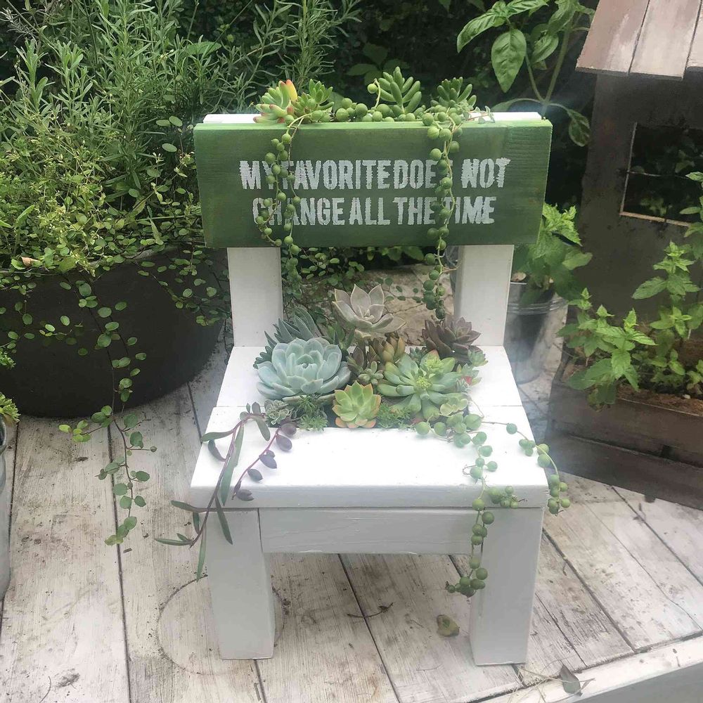手作り椅子に寄せ植え