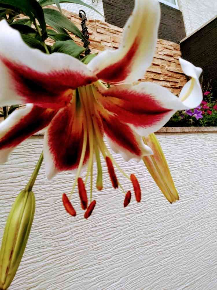 ユリは垂れ下がり下に向かって、咲いていました。