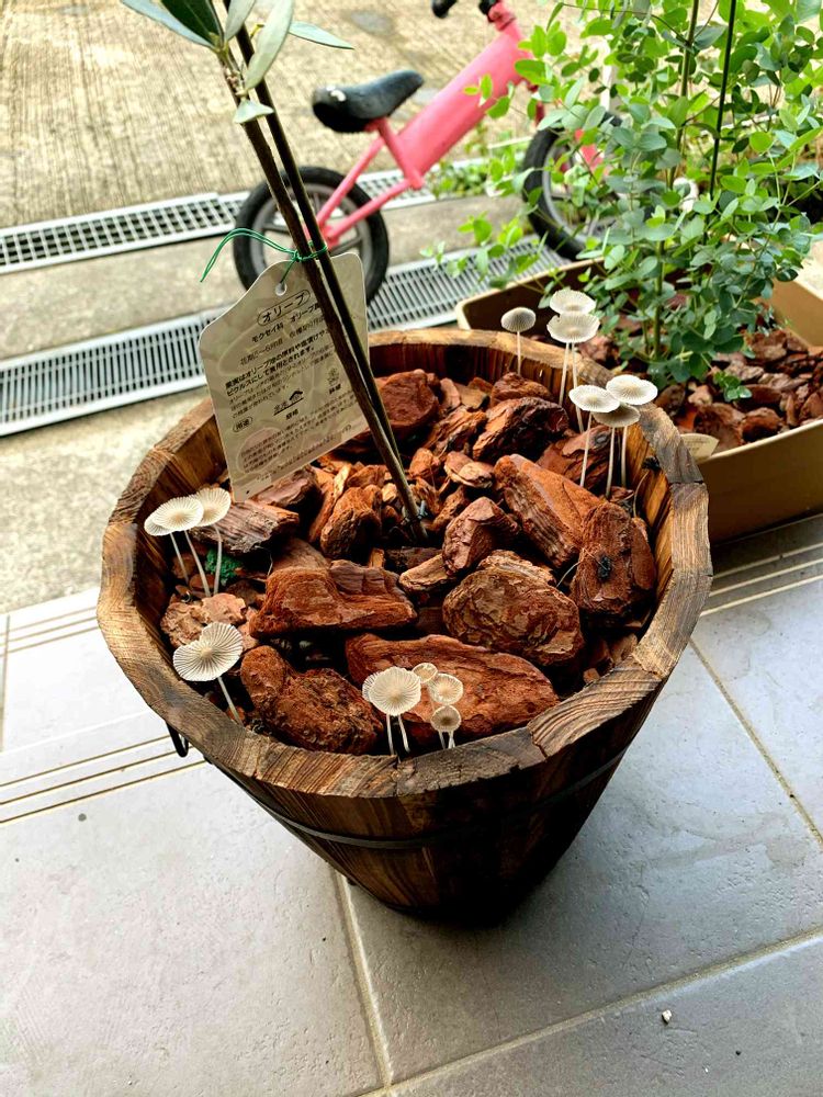 オリーブの鉢に沢山のキノコ🍄