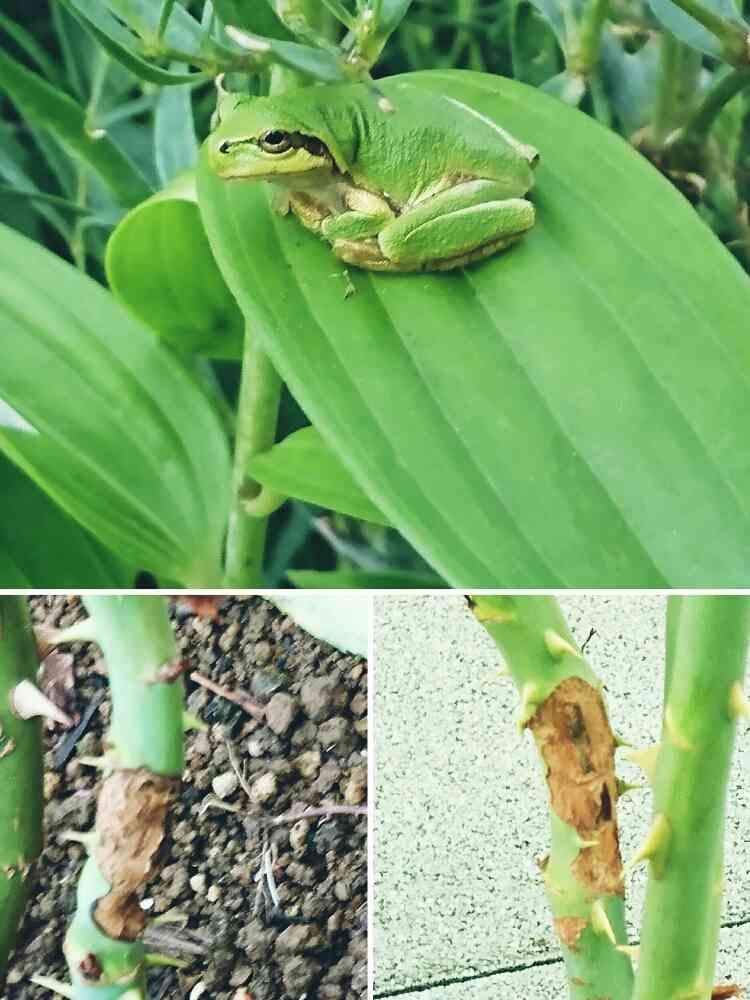 ↙↘は薔薇🌹サンの茎が何者かにかじられてしまい、もす子先生に見ていただこうとpicしました😊