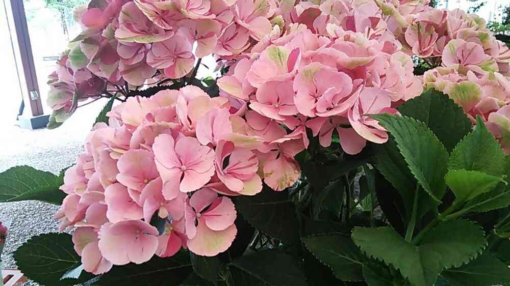 桜色花弁に淡い緑色が素敵な紫陽花が飾られていました~☺