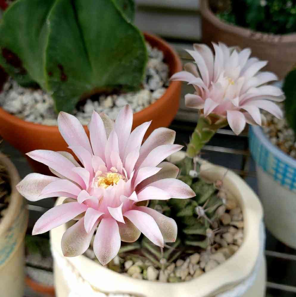 先日、ギムノカリキウムの麗蛇丸が似たお花を咲かせたのですが、どちらも優しい感じで好きです。😊💕