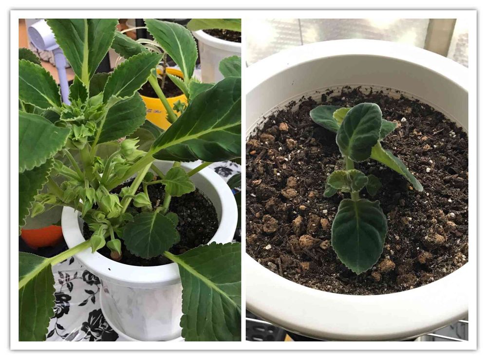 右は、4月21日picの芽が出て植え替え後、1ヵ月の、グロキシニアさん。