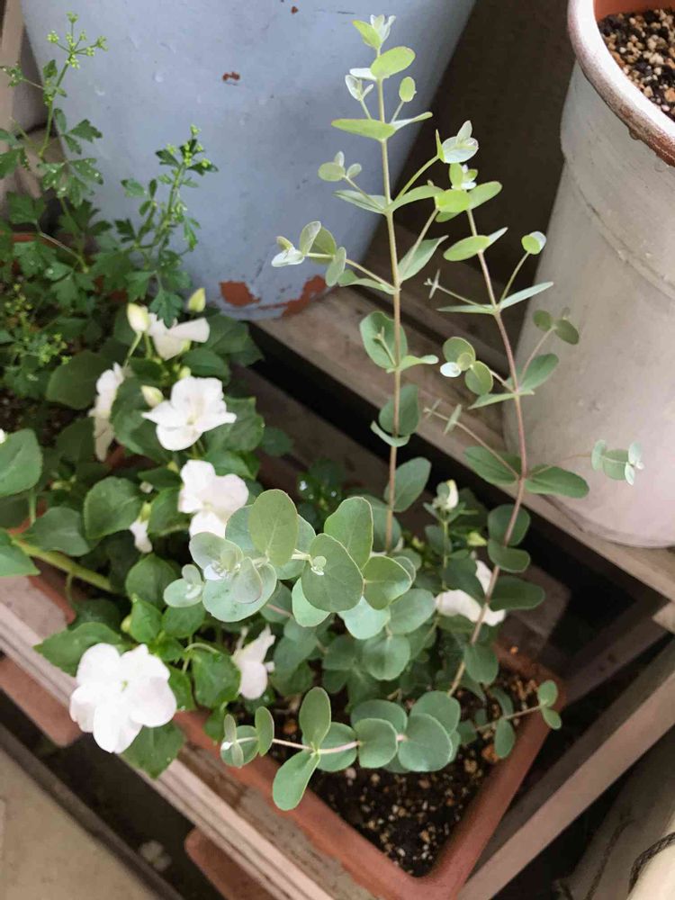 ユーカリ「グーニー」の苗とインパチェンス。
