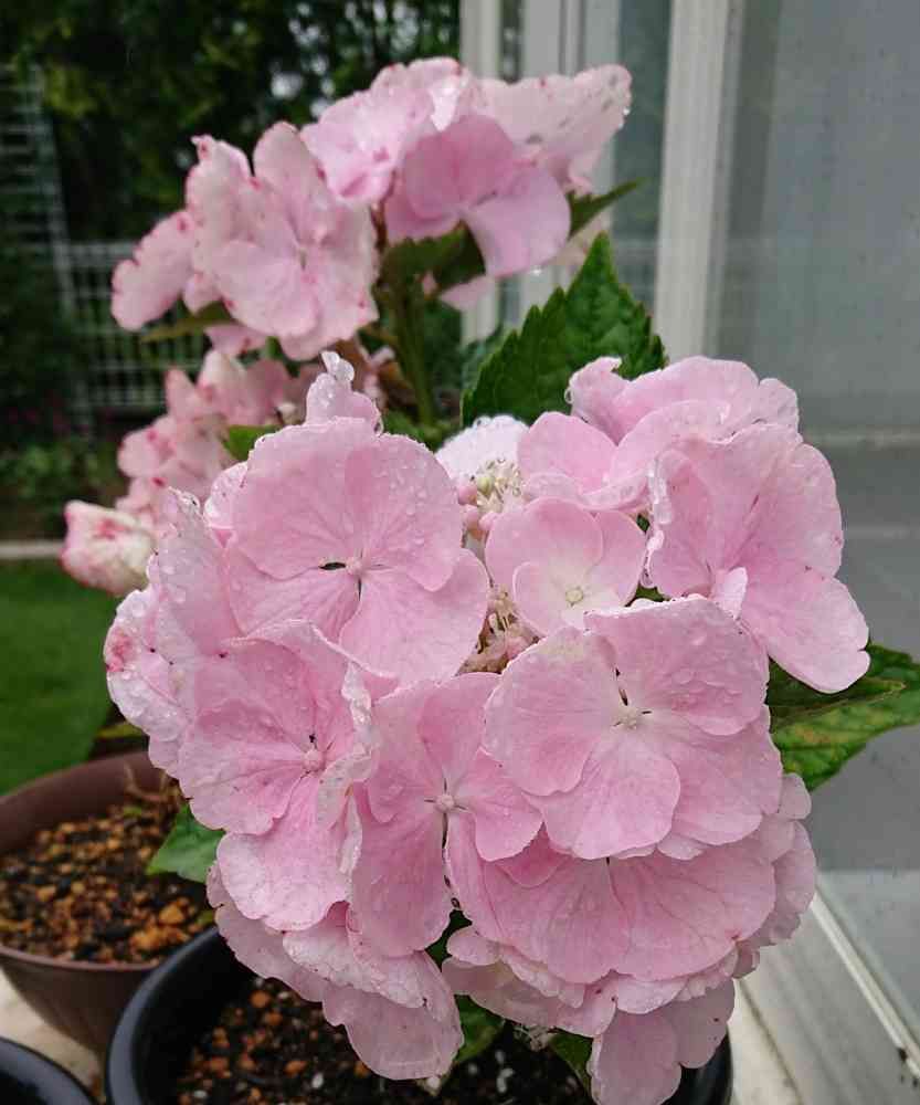 会社の花壇にある紫陽花を挿し芽したんですよ😁 二度目で成功して初めてのお花です☺️