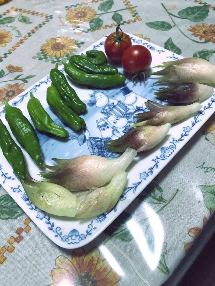 2020ー7ー12 今日の収穫夏野菜 シシトウ 7 シンディースィート 2 ミョウガ 6
