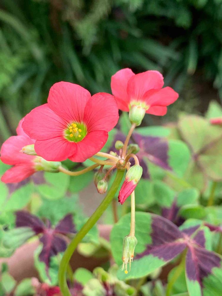 特徴:モンカタバミは別名「ラッキークローバー」とも呼ばれ、中央に黒い模様が入るハート型の可愛らしい葉を四枚つけるメキシコ原産の多年草です。