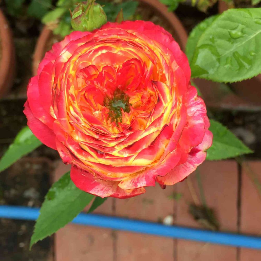 去年咲いたら、赤と黄色の複輪?オレンジ?