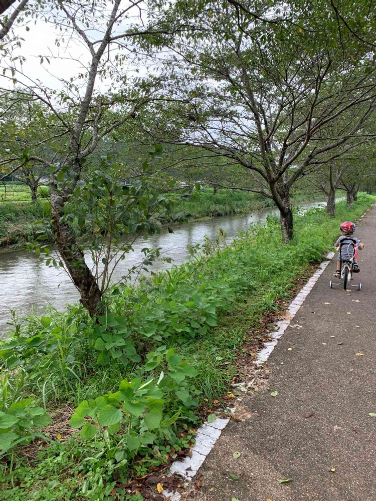 夫が半日出勤だったこともあり、夕方になってからですが、久しぶりに息子リクエストの自転車練習のため、いつものサイクリングコースへ🚴♂️