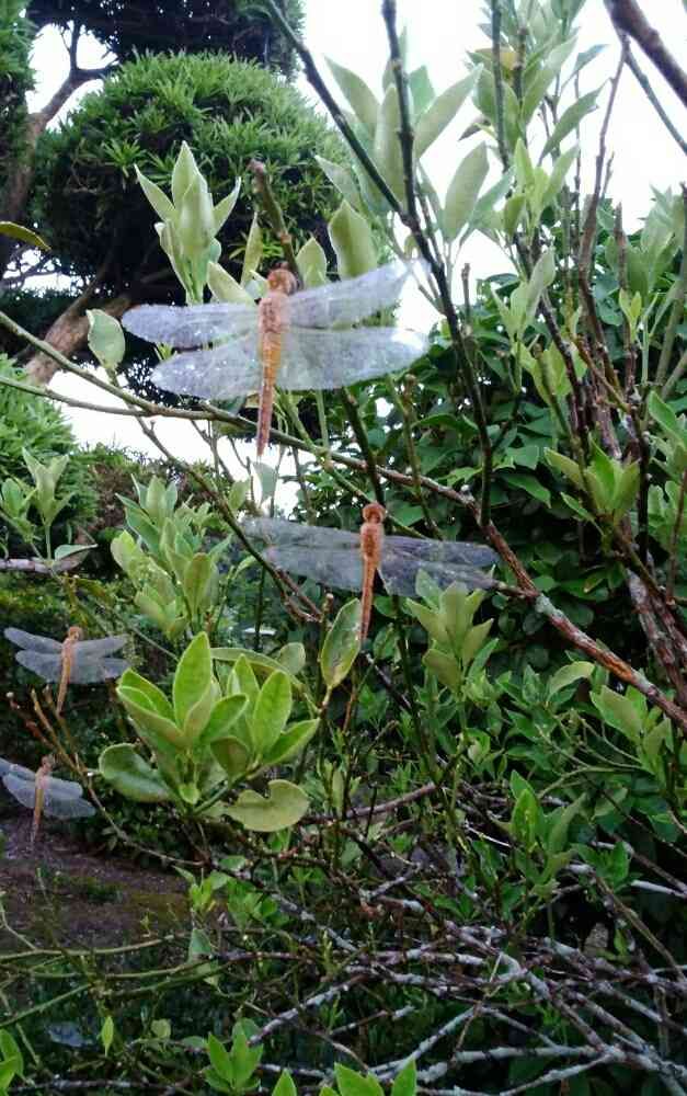 さっき、庭をまた見て回ると、あちこちにトンボだらけ。