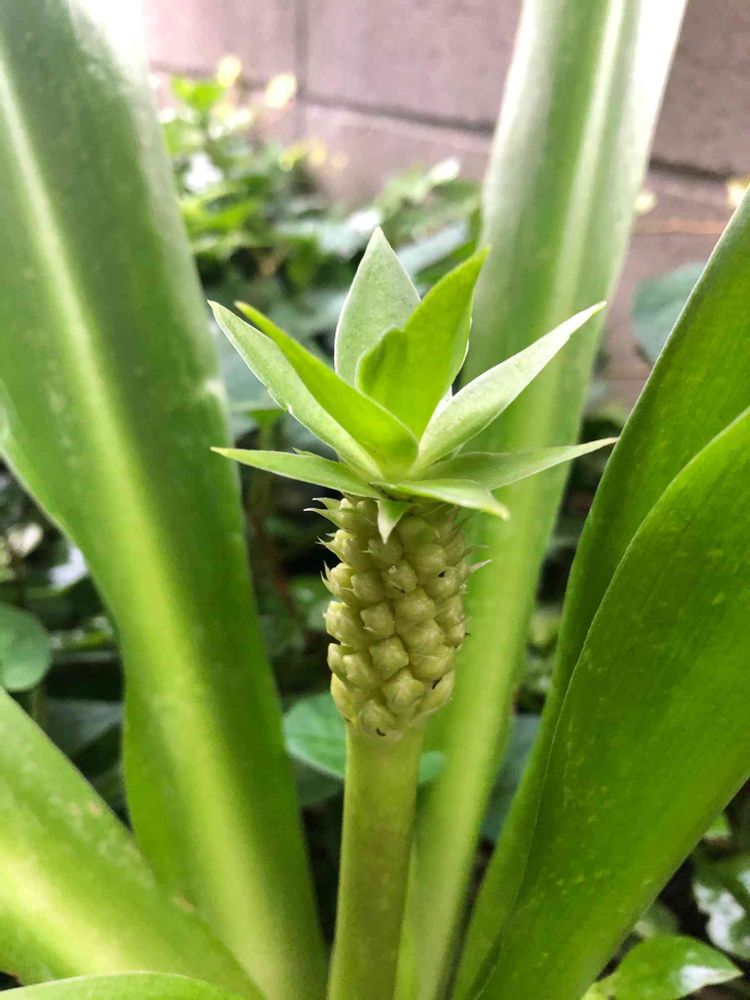 今年もドンドン葉っぱだけが大きくなって諦めていたら可愛いパイナップルリリーさんが登場💕