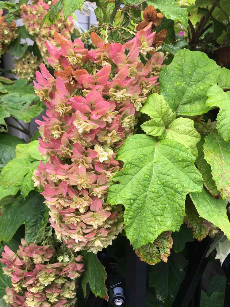 カシワバアジサイスノーフレークが白から紅葉してきてます。これもきれいですね。