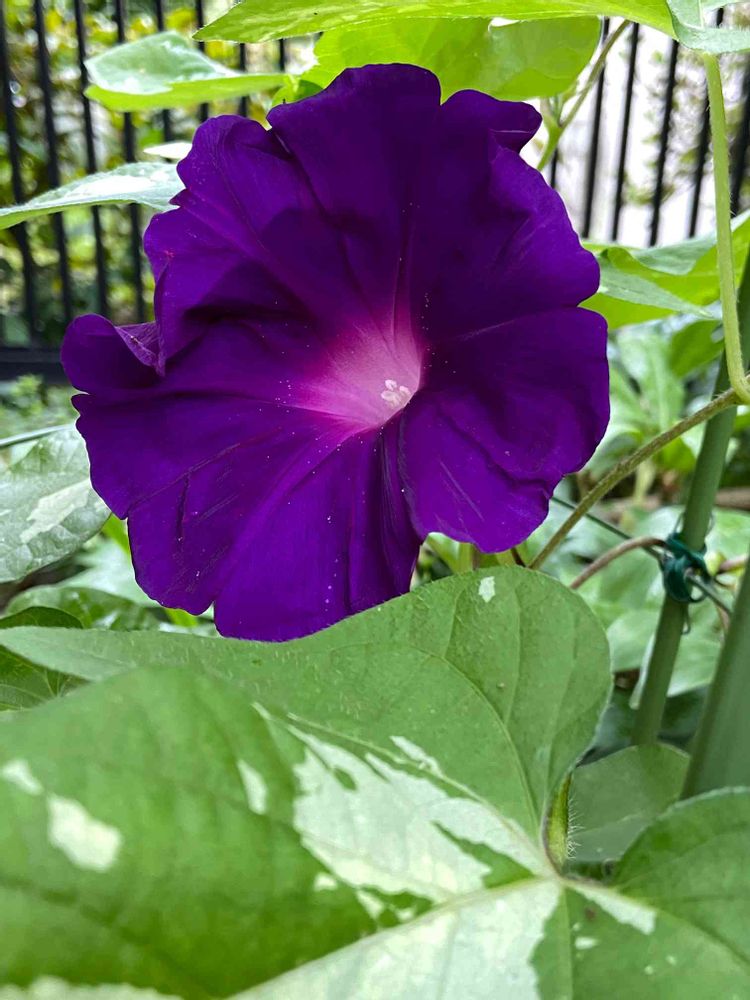 大輪アサガオが最近の雨で急成長し、やっと花が咲きました。
