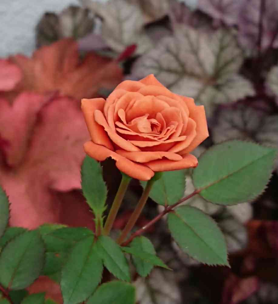 素敵なオレンジ色。葉っぱの緑も健康そう。後ろのカラーリーフが、とてもいい仕事してますね。美しいものはより美しくですね。