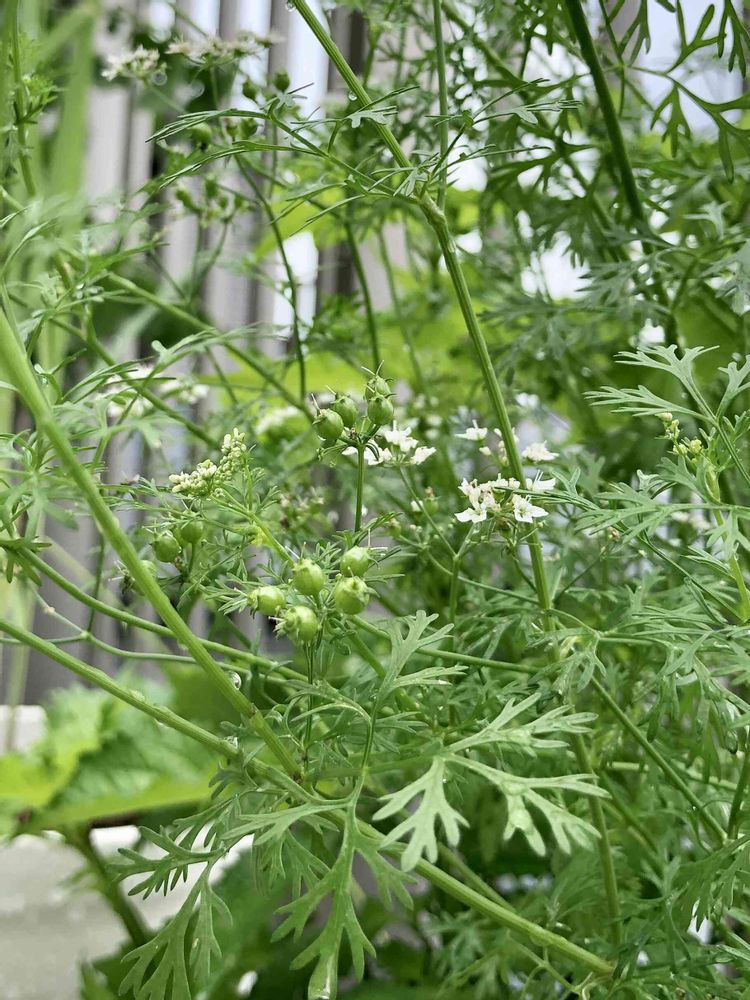 花が咲く🌼と、パクチーの葉🌿は終了💦