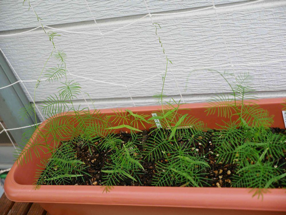シランさんから種を分けていただいたルコウ草のツルが伸び始めました~(◦ºั╰╯ºั◦)♬*