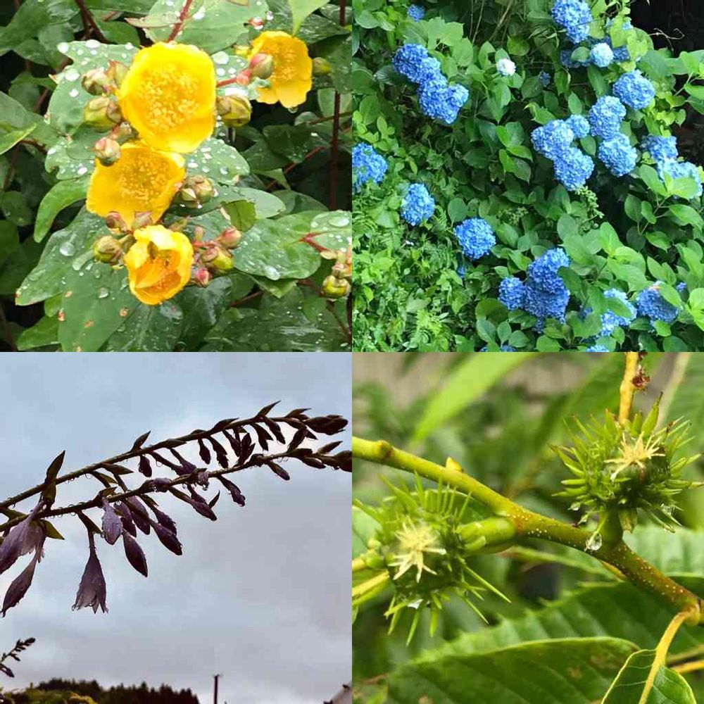 日曜日の午後から雨だったので、雨に濡れた紫陽花、キンシバイ、ギボウシ、栗の赤ちゃんなど撮影してみました😄