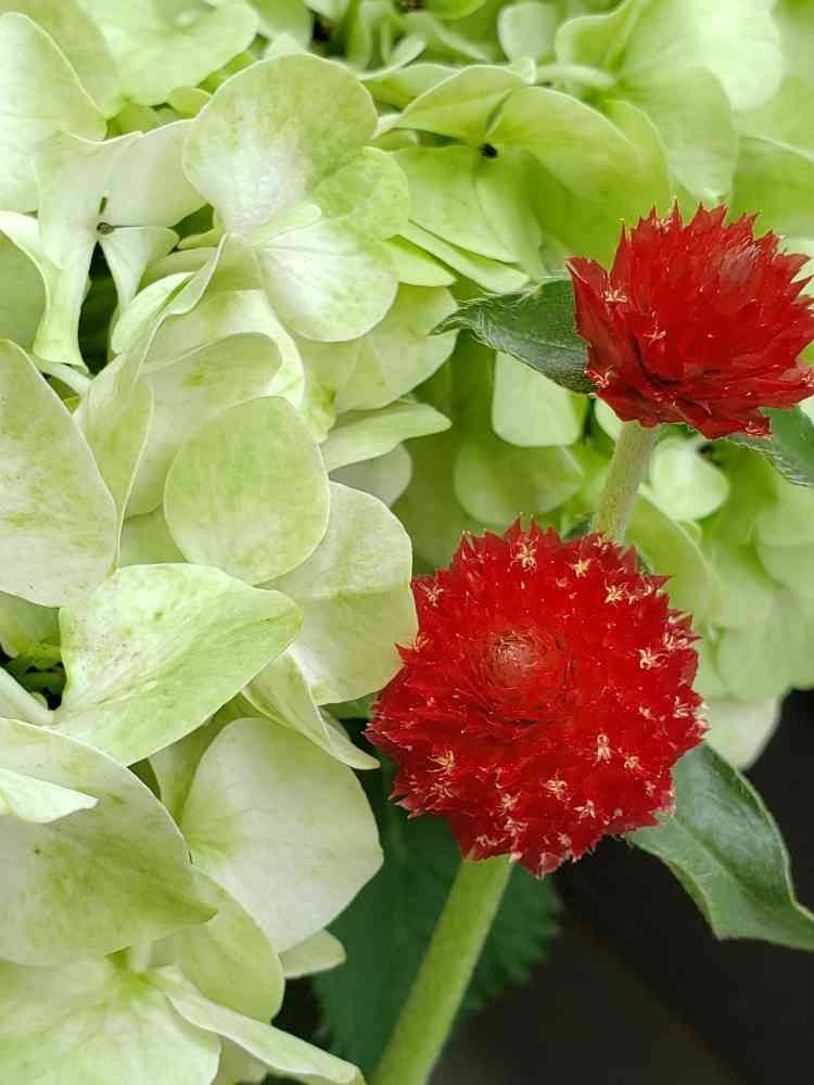 min♪♪♪さんのバルコニー/ベランダ,千日紅 ストロベリーフィールズ,紫陽花 バニラスカイの投稿画像