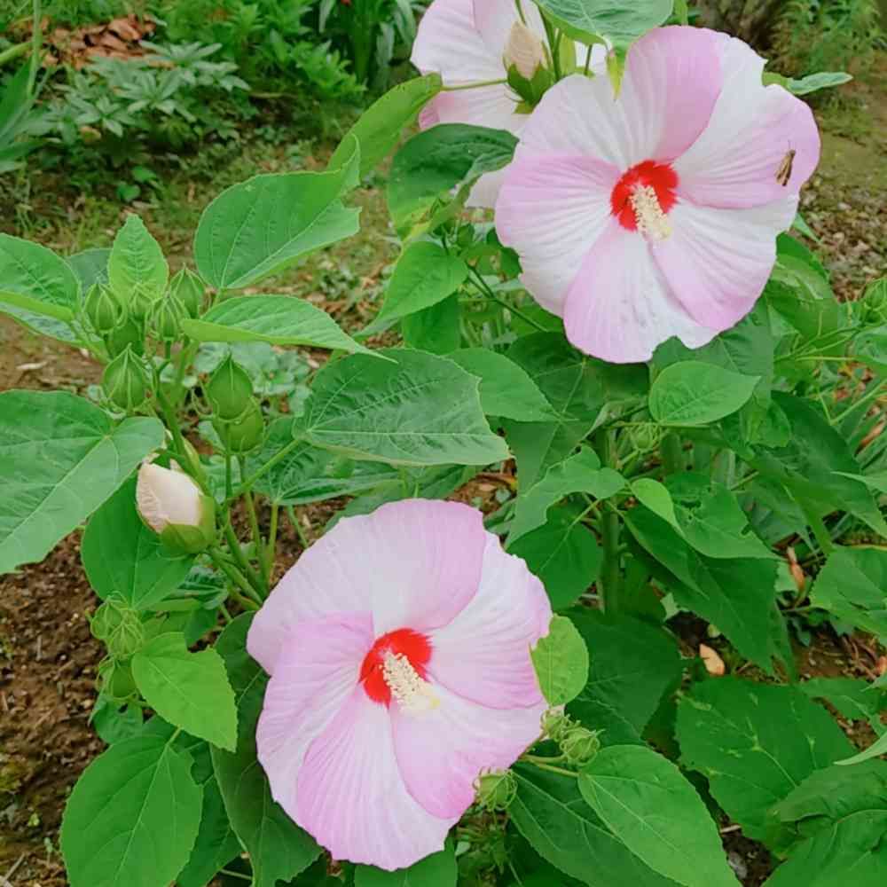 アメリカフヨウ、3つ咲きました🌸今日は涼しいので色も濃く出ました。時間も長く咲いています😊