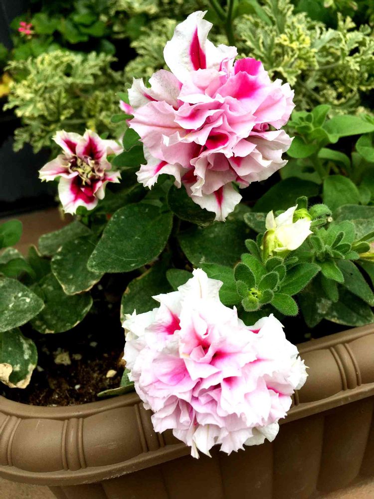 お買い得コーナーのペチュニア さん、咲く時によって色の入り方が違います😅 昨年は紅水晶さんそっくりさんも出てた😁