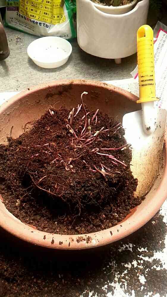 縦長い鉢から抜くのが大変なのと球根が大きすぎるので平鉢に植えようと思います。