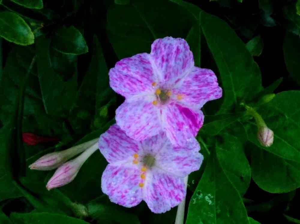 仕事帰りに、通り道のお宅の花壇に、咲いていた此の白粉花、迚も綺麗でした。