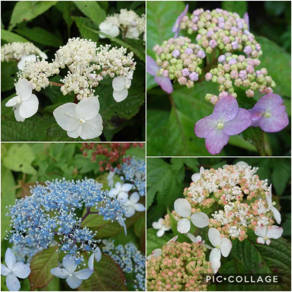 ガクアジサイに比べると色が多彩で小ぶりです😉