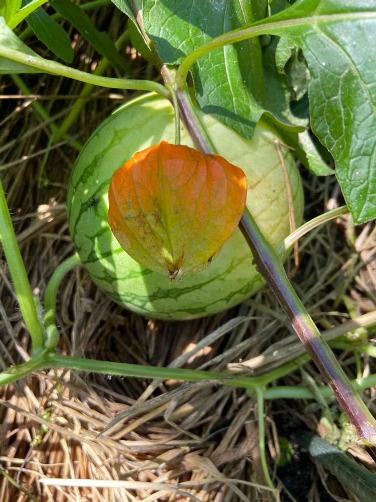 さま、暴風雨で鬼灯が倒れて西瓜に