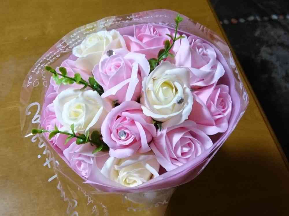 写真はパパが20周年に買ってきた、石鹸のお花ブーケです☺