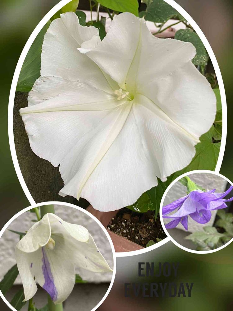夕方 雨が小止みになった庭パトで、夕顔が咲いていました💕❣️