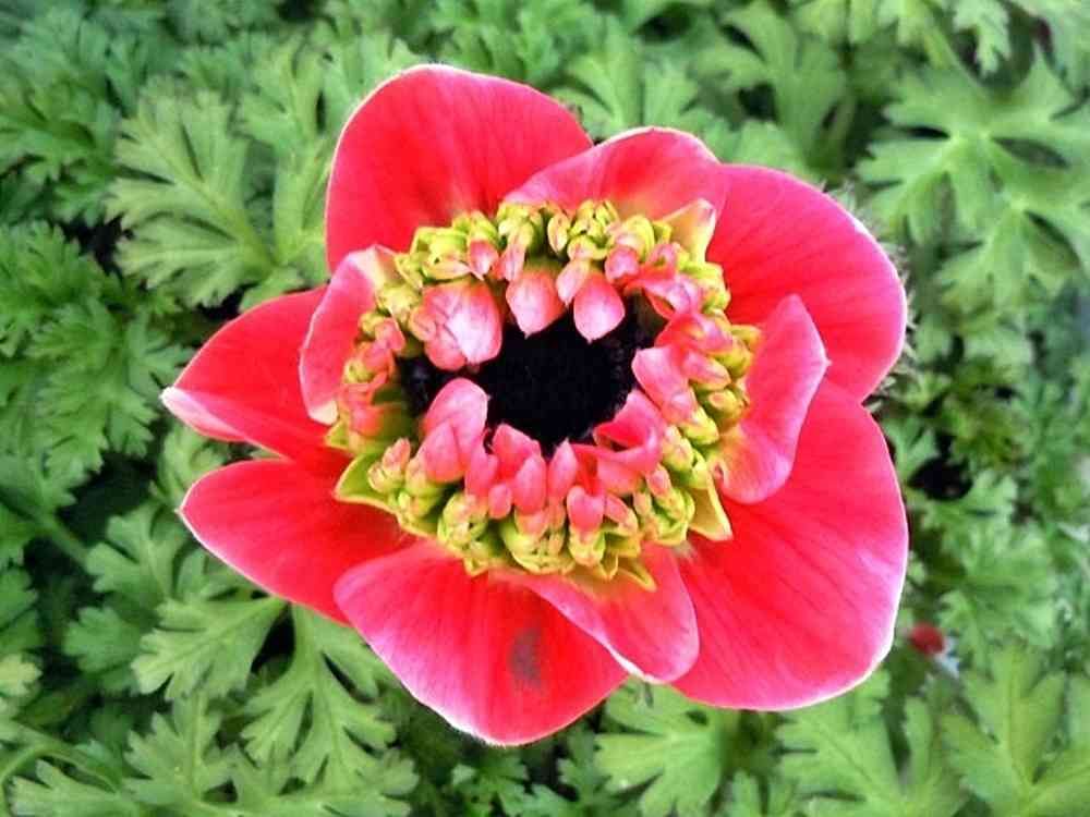 「ガハハッ」って感じのお口にも見えますが お花の名前はわかりません。