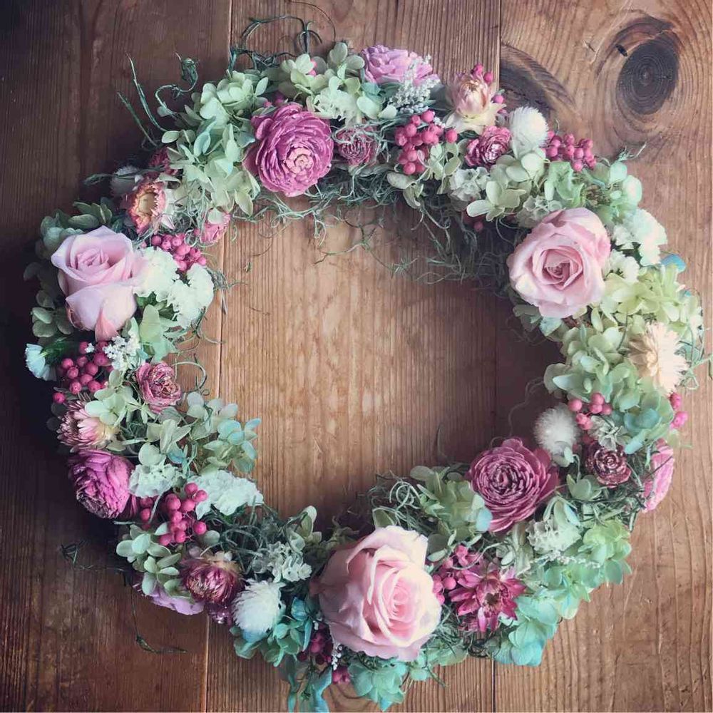 花材はプリザードフラワーとドライフラワーです。リース気に入っていただけて嬉しいです❤️