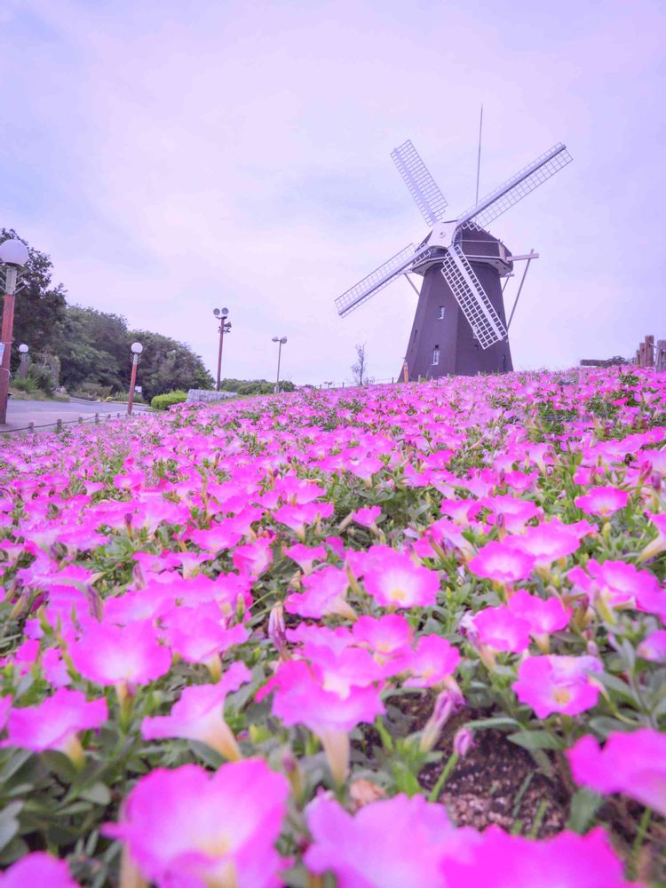 ヒマワリとペチュニアが同時にこの風車の丘では堪能できます🌻🌸✨