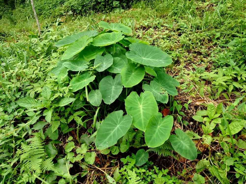 広い庭,里芋の葉っぱ,梅雨の投稿画像