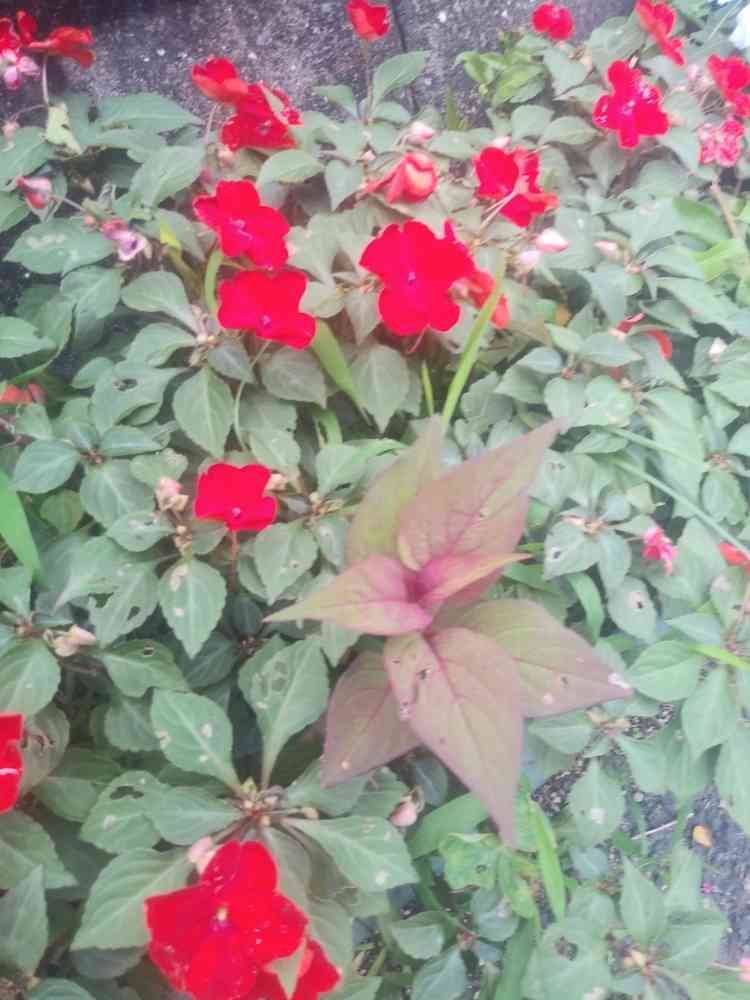 今にも雨☔が降りそうです😰 インパーチエンスの中にケイトウが伸びてるので お引っ越ししました😊