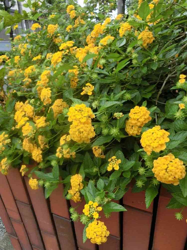 眩しい程に輝く黄色いランタナが咲き乱れています。