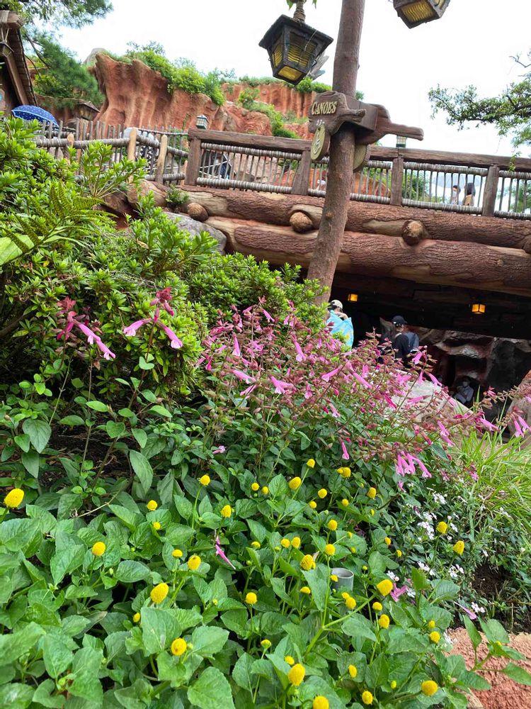 ディズニーランドのカヌー乗り場の近くの花壇です🏵🌺🏵🌺