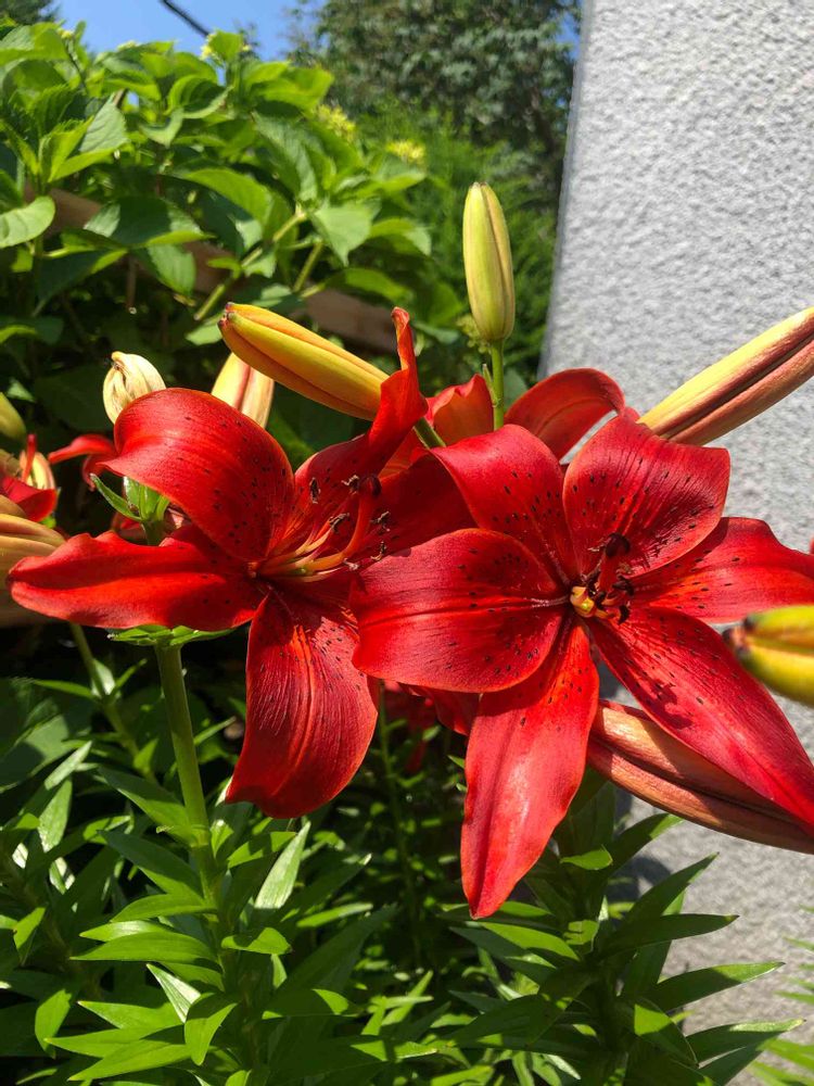 まなさん、こんにちは😊お久しぶりです♪♪今日は曇っていたけれど、雨は珍しく降りませんでした。梅雨で日照時間が少なくてベランダの花も一部枯れてしまいました😢外に出ると今は芙蓉が咲いています。ユリも咲いてます。こちらにも少し前に赤いユリが咲いていましたよ。情熱的な赤い色ですね💃パワーをもらえました!(*´︶`*)♡Thanks!まだまだ雨が続きそうですが、早く梅雨が明けないかな!