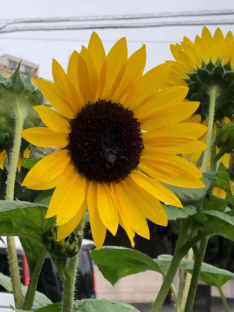 この前のひまわりとは品種が違うようなので。こちらも咲き始めました。